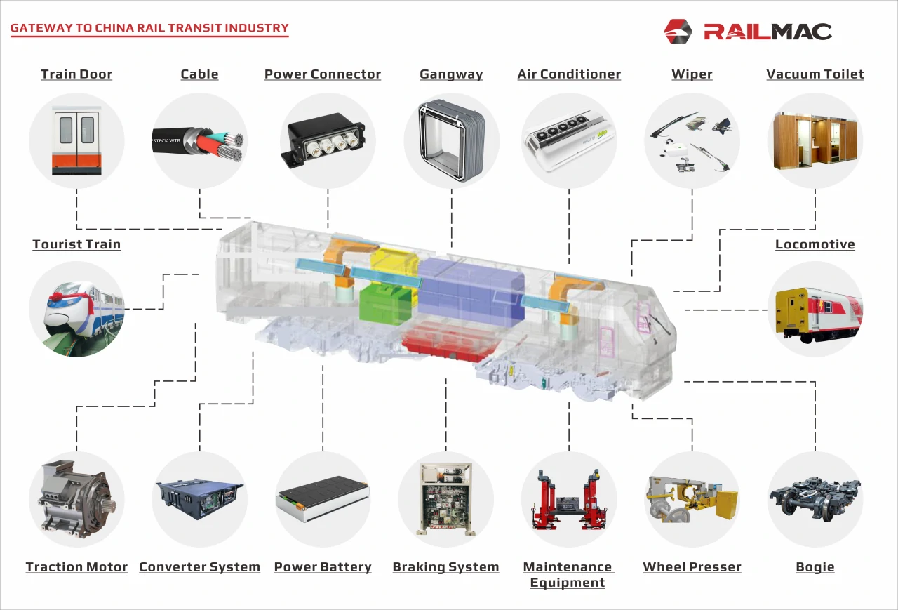 SinoGen Rail Transit Division’s business is mainly divided into two categories: train parts, complete vehicles and maintenance equipment. In the field of train parts, the business focuses on manufacturers, and is also committed to providing all-round support for the supply of maintenance parts. Specifically, the types of train parts cover multiple categories such as parts, traction systems, bogies and brake systems. In terms of parts, SinoGen cooperates with Huateng Company under the CRRC brand to provide vacuum toilet products; cooperates with Jinchuang to supply door products; and cooperates with Liancheng to provide gangway products, etc. In terms of traction systems, our company mainly cooperates with Shenzhou Traction and serves as the ABB China agent of Shenzhou Traction to give full play to the advantages of both parties and provide customers with high-quality traction system solutions. In terms of bogies and brake systems, Jiufang’s bogie parts and CRRC Braking’s brake systems are usually selected to ensure the high performance and reliability of the products.